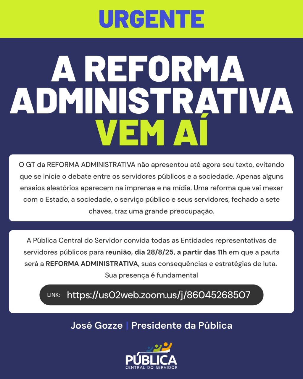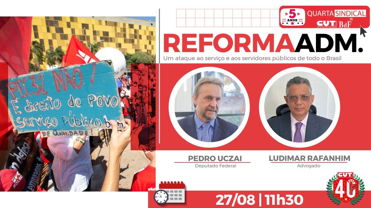 📣 Fim da estabilidade (e, por consequência, da independência funcional), ampliação da terceirização e dos contratos temporários, concentração excessiva – e perigosa – de poder nas mãos do chefe do momento e carreiras típicas de Estado sem definição clara. Tudo isso tem como consequência evidente uma queda certa na qualidade dos serviços públicos ofertados à população. Este é o resumo da proposta de Reforma Administrativa que tramita no Congresso Nacional. Para explicar os principais pontos da proposta que o presidente da Câmara, Hugo Motta, pretende levar à votação, o Quarta Sindical desta semana recebe o deputado federal Pedro Uczai e o advogado Ludimar Rafanhim.