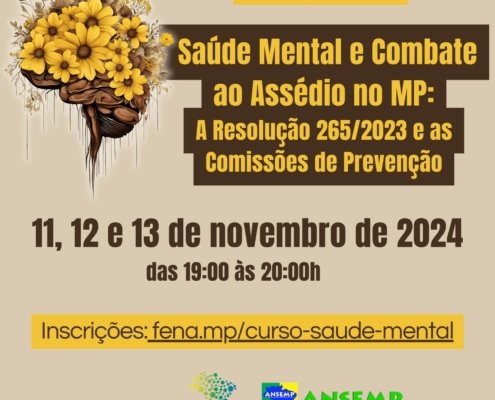 A FENAMP e a ANSEMP têm o prazer de convidar os integrantes do Ministério Público Brasileiro para a formação online “Saúde Mental e Combate ao Assédio no MP: A Resolução 265/2023 e as Comissões de Prevenção”. 📔