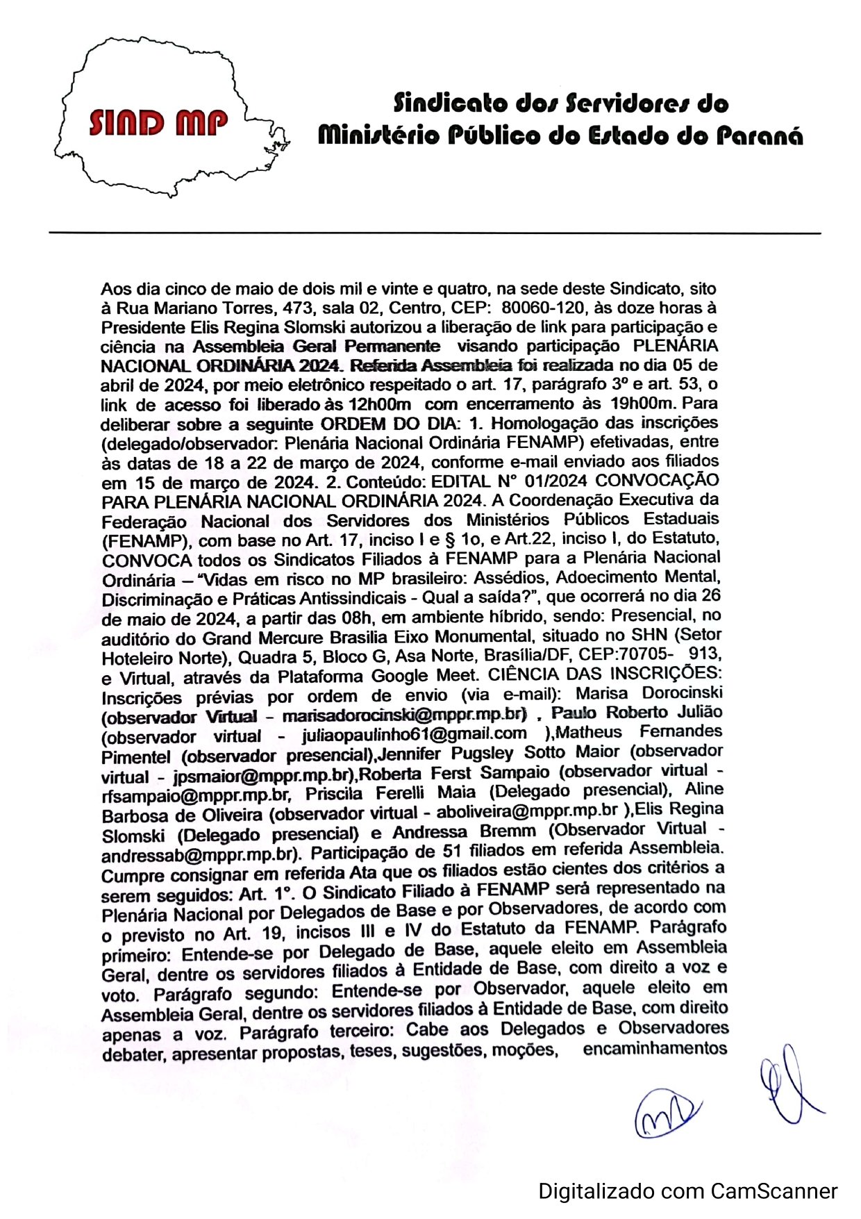 09:30h – 12:00h: Plenária Nacional Ordinária da FENAMP (Itens 1 e 2):