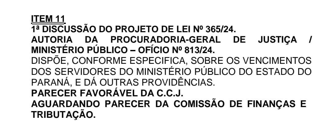 As entidades de classe Sind-MP e ASSEMP-PR estão na ALEP nesta tarde, acompanhando a votação em plenário do PL-365/2024 (reposição salarial). Lembrando que após a aprovação na ALEP o PL será enviado ao Poder Executivo para sanção ou veto do Governador.