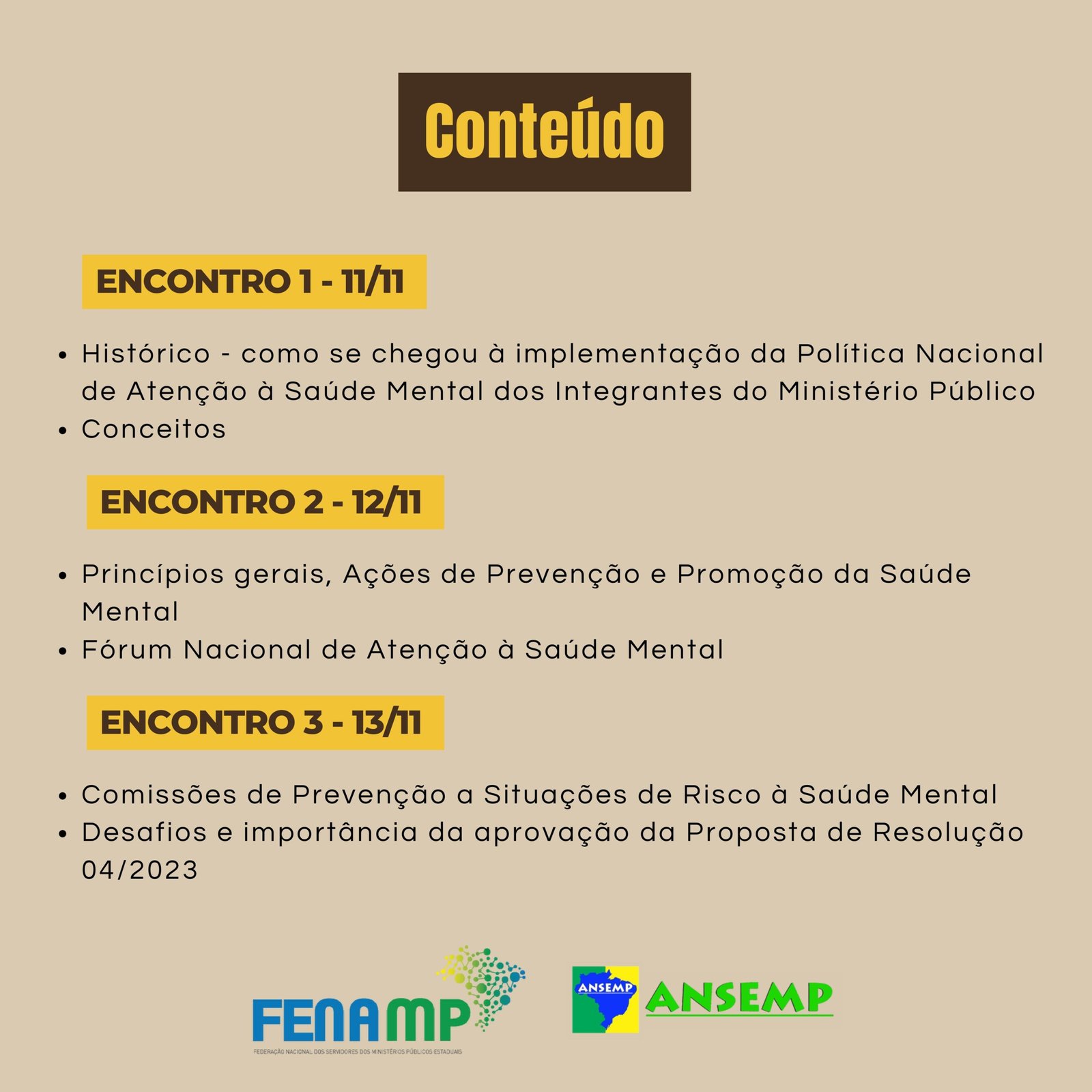 A FENAMP e a ANSEMP têm o prazer de convidar os integrantes do Ministério Público Brasileiro para a formação online “Saúde Mental e Combate ao Assédio no MP: A Resolução 265/2023 e as Comissões de Prevenção”. 📔
