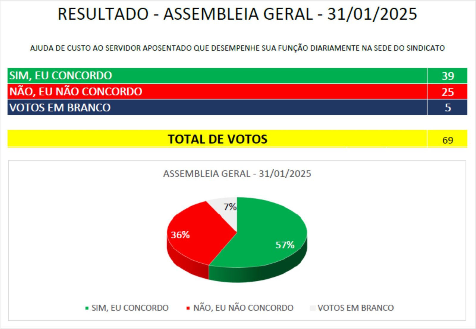 VOTAÇÃO DE AJUDA DE CUSTO AO SERVIDOR APOSENTADO QUE DESEMPENHE SUA FUNÇÃO DIARIAMENTE NA SEDE DO SINDICATO.