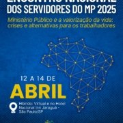 O SIND MP – SINDICATO DOS SERVIDORES DO MINISTÉRIO PÚBLICO DO ESTADO DO PARANÁ, através de sua Presidente, no uso das atribuições que lhe confere o Estatuto CONVOCA os Servidores do Ministério Público do Estado do Paraná, FILIADOS, para ASSEMBLÉIA GERAL PERMANENTE, a ser realizada no dia 06 de março de 2025, por meio eletrônico respeitado o art. 17, parágrafo 3º e art. 53,o link de acesso será liberado às 09h00m com encerramento às 16h00m. Para deliberar sobre a seguinte ORDEM DO DIA: Inscrições e homologação: (Inscrições: observador hibrido ou presencial). Para o Encontro Nacional dos Servidores do MP que acontece anualmente para definir o plano de lutas e as pautas centrais da categoria. Em 2025, o tema do evento é “Ministério Público e a valorização da vida: crises e alternativas para os trabalhadores”. As atividades ocorrem entre os dias 12 e 14 de abril, de forma híbrida ou Presencial: Auditório do Hotel Nacional Inn Jaraguá (Rua Major Quedinho, 28, São Paulo/SP, CEP: 01050-030).Virtual: Plataforma Google Meet.O encontro conta com mesas de debate, Assembleia Geral Ordinária da ANSEMP, Plenária e III Congresso Ordinário da FENAMP. Dia 1 12 de Abril (Sábado – 08h às 18h) – Mesas de Debate 08:00h – 08:30h – Credenciamento e recepção 08:30h – 09:00h – Mesa de Abertura (ANSEMP e FENAMP) 09:00h – 09:30h – Plenária da FENAMP Aprovação do Regimento Eleitoral e definição da Comissão Eleitoral. 09:30h – 12:00h – Congresso Ordinário da FENAMP 1. Análise de Conjuntura e Balanço Organizativo; 2. Prestação de Contas 2024 e Previsão Orçamentária 2025; 3. Eleição do sistema diretivo da FENAMP. 12:00h – 13:30h – Intervalo para almoço 13:30h – 18:00h – Continuidade da Pauta 4. Aprovação do Plano de Lutas 2025; 5. Autorização para Fundação da Confederação Nacional dos Trabalhadores do Sistema de Justiça; 6. Outros assuntos. 18:00h – Encerramento do Congresso. Dia 2 13 de Abril (Domingo – 08h às 18h) – Plenária e Congresso da FENAMP 08:30h – 12:00h – XXVII Encontro Nacional da ANSEMP: Assembleia Geral 1. Apreciação do relatório de atividades da ANSEMP; 2. Discussão e aprovação das contas de 2024;3. Apresentação de demandas pelos estados; 4. Discussão e aprovação do Plano de Lutas para 2025; 5. Eleições para a Diretoria e Conselho Fiscal da ANSEMP; 6. Outros assuntos. 12:00h – 13:30h – Intervalo para almoço 13:30h – 15:00h – Ato Político no MPSP 16:00h – 18:00h – Atividade Cultural. .Art. 1°. O Sindicato Filiado à FENAMP será representado na Plenária Nacional por Delegados de Base e por Observadores, de acordo com o previsto no Art. 19, incisos III e IV do Estatuto da FENAMP. Parágrafo primeiro: Entende-se por Delegado de Base, aquele eleito em Assembleia Geral, dentre os servidores filiados à Entidade de Base, com direito a voz e voto.Parágrafo segundo: Entende-se por Observador, aquele eleito em Assembleia Geral, dentre os servidores filiados à Entidade de Base, com direito apenas a voz.Parágrafo terceiro: Cabe aos Delegados e Observadores debater, apresentar propostas, teses, sugestões, moções, encaminhamentos ou representações de qualquer natureza que demandem providências da FENAMP. Parágrafo quarto: As deliberações da Plenária Nacional serão adotadas por maioria simples dos votos dos Delegados credenciados presentes (fisicamente ou virtualmente).Art. 6°. As Entidades filiadas devem participar de todas as atividades convocadas pela FENAMP ou justificar seu impedimento, conforme disposto no Art. 7°, II, do Estatuto da FENAMP. Art. 7°. O link de acesso para a Plenária Nacional da FENAMP será encaminhado, previamente, para todos os participantes credenciados que optarem pela modalidade virtual. Considera-se já inscrita como delegada presencial a Presidente Elis Regina Slomski e observadora presencial Diretora Administrativa Marisa Dorocinski. A presente Assembleia formalizará a inscrição dos servidores filiados para observadores presenciais ou híbridos. Esclarecemos que contamos com 01 (vaga) para delegado presencial, havendo mais de um inscrito faremos nova Assembleia para desempate.