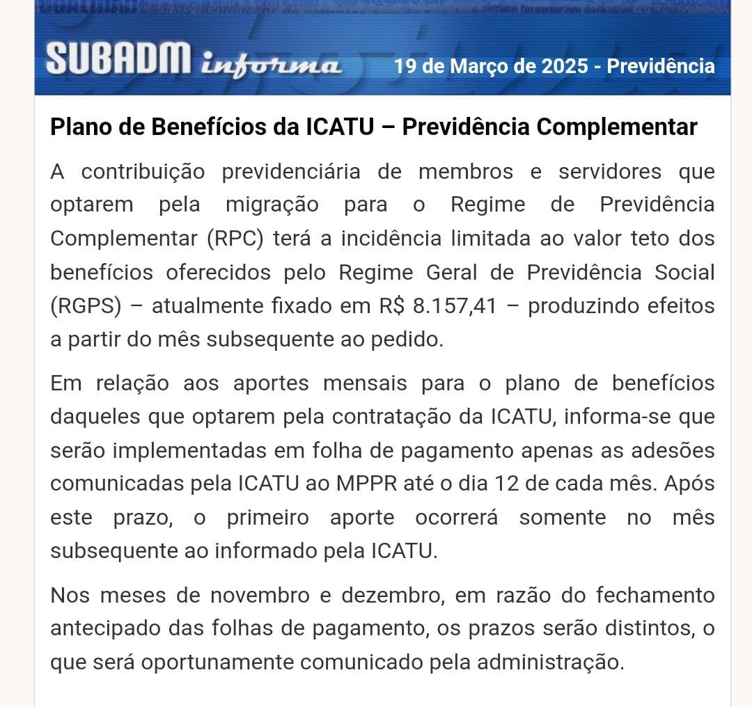 Lembramos que o prazo para essa opção foi aberto no dia 28/02/2025 e ressaltamos a importância de uma decisão consciente, amparada no conhecimento desses impactos e nos riscos existentes.