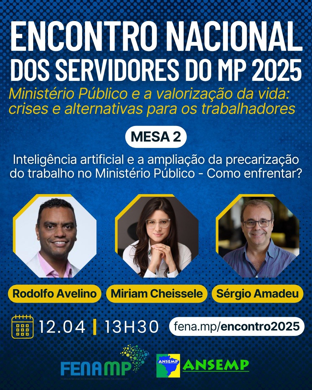 📅 A mesa acontece no dia 12/04, às 13h30, dentro da programação do Encontro Nacional dos Servidores do MP 2025.