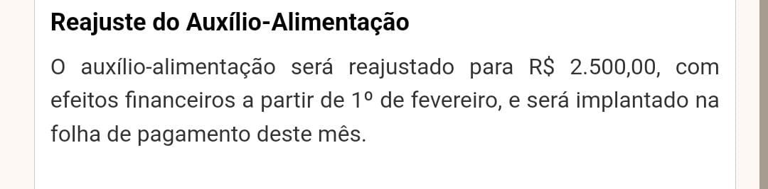 Esclarecimentos: O sistema virtual será liberado das 09:00 hs às 12:00hs. Após o servidor validar sua anuência no valor sugerido ou não, valida o voto por meio do link. Valor mensal sugerido R$ 500,00 (quinhentos reais mensais em suma R$ 25,00 (vinte e cinco reais por dia), o reajuste será com base no mesmo índice de reposição salarial (IPCA) aplicado aos servidores do Ministério Público do Estado do Paraná, cumpre salientar que o primeiro reajuste será aplicado somente em 2026.