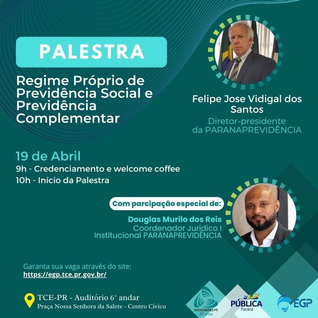 O SindicontasPR, a Pública Paraná e Escola de Gestão Pública do TCEPR, convidam você para a palestra : “Regime Próprio de Previdência Social e Previdência Complementar”, um evento imperdível para quem busca compreender a fundo os desafios do sistema previdenciário.