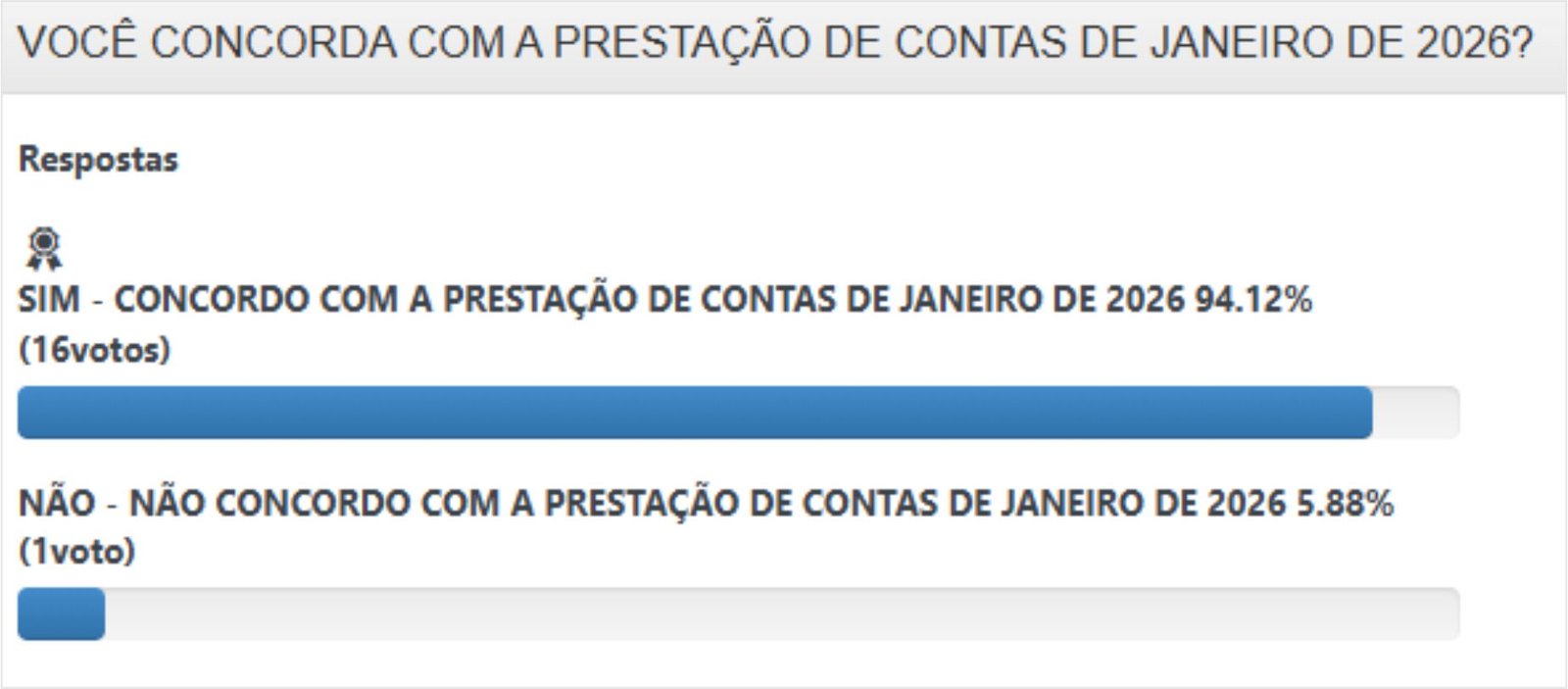 RESULTADO ASSEMBLEIA GERAL – PRESTAÇÃO DE CONTAS JANEIRO 2026