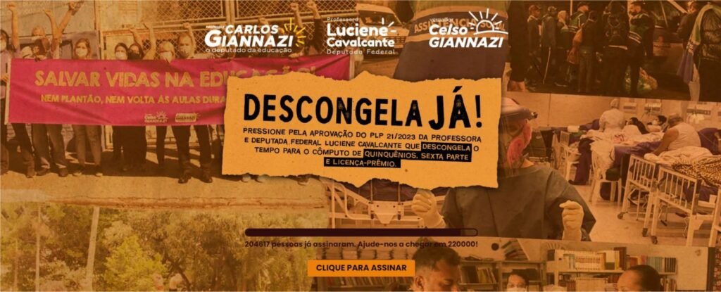 Apoie o nosso abaixo-assinado pela aprovação do PL 21/2023 da professora Luciene Cavalcante que garante o descongelamento dos quinquênios, sexta-parte e licença-prêmio dos servidores!